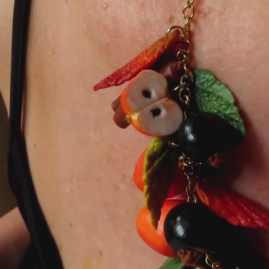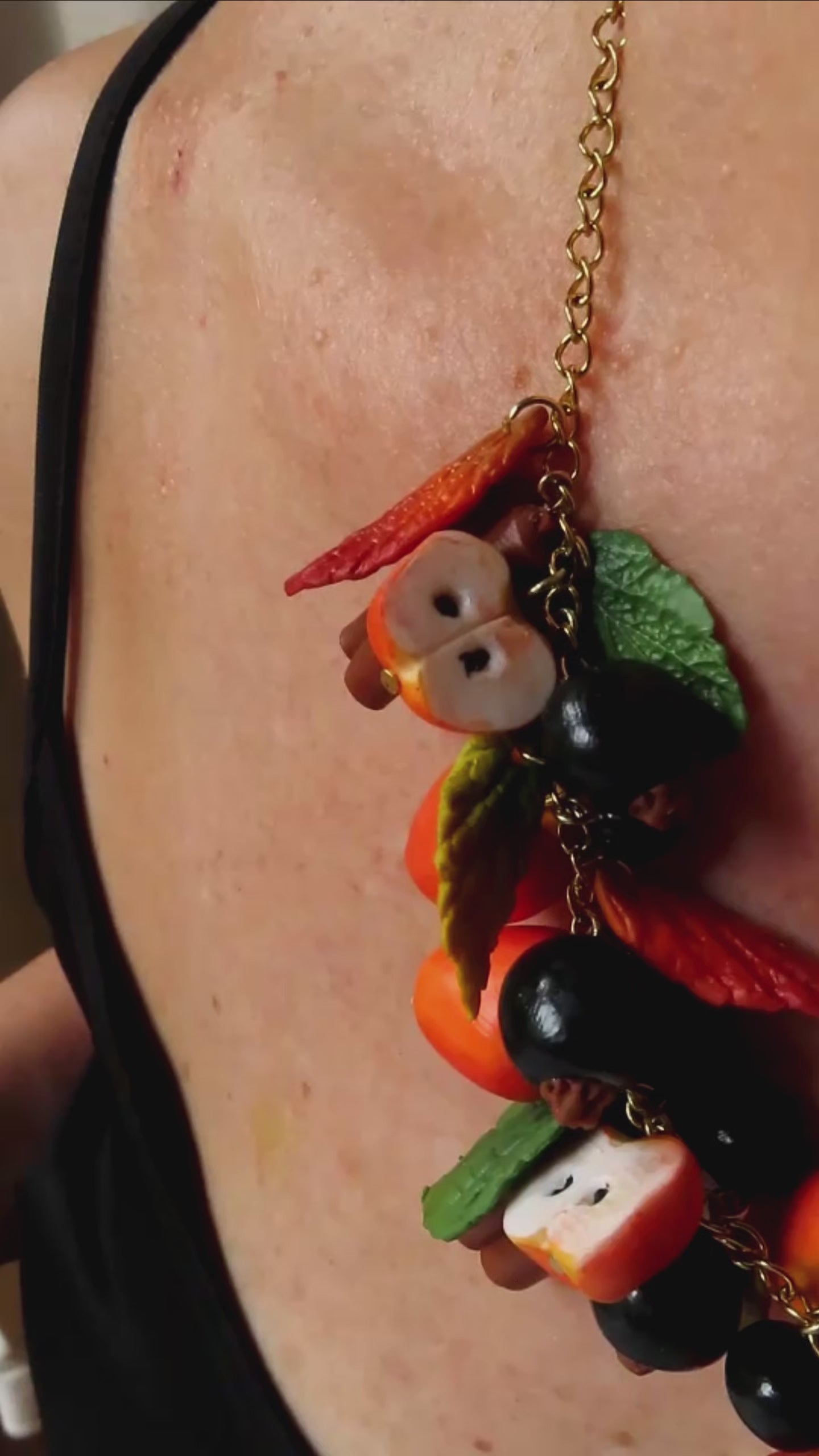 Materiales: arcilla polimérica de alta calidad, pintura acrílica, cadena metálica dorada libre de níquel.
