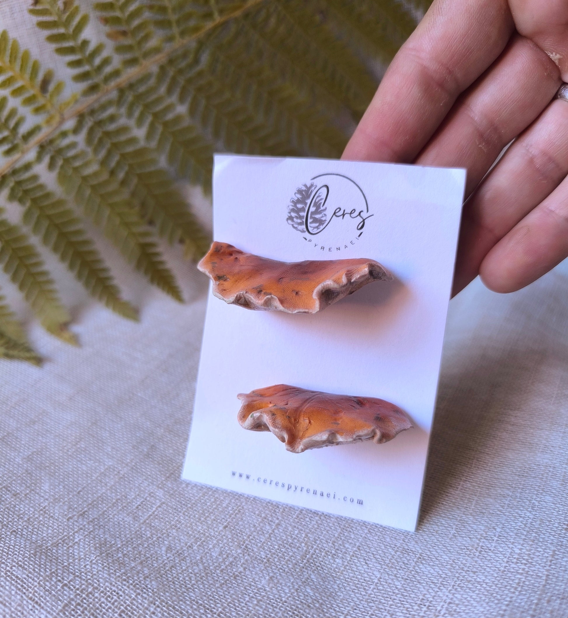 Inspirados en las setas que crecen sobre los troncos viejos, estas piezas capturan la textura y el color de la madera viva, donde el bosque respira lentamente.